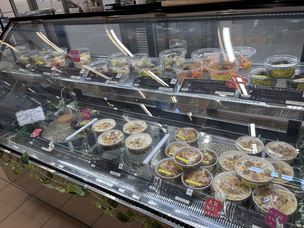 ワインに合いそうな、魅力的な手作りお惣菜販売が良い感じ。