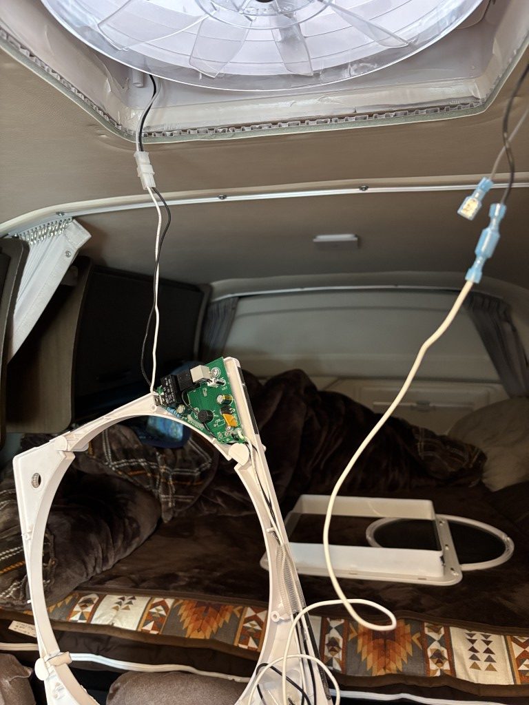マックスファンの周りは木枠とコーキングで囲われていて、天井裏に割り込ませるスペースが見当たらなかったので