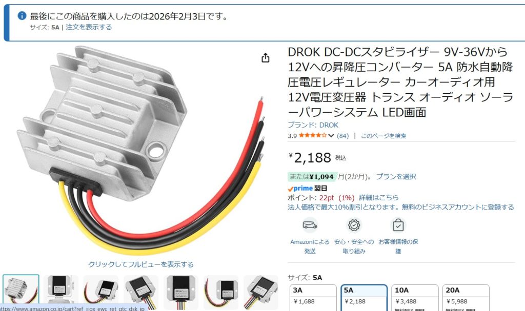 (9V-36Vの入力を12Vに変換できるコンバーター)